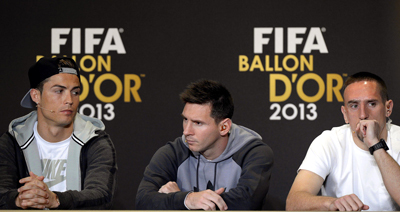 وحصد رونالدو 1365 صوتاً، بينما حصل نجم برشلونة، ليونيل ميسي، على 1205 أصوات، وحصل ريبيري على 1127 صوتاً.