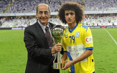 عمر عبدالرحمن يتسلّم جائزة أفضل لاعب واعد من غبريس. الإمارات اليوم