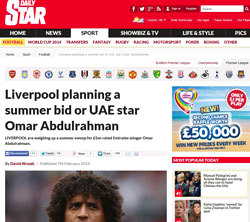 وقالت الصحيفة في عددها الصادر، أمس، إن «عمر عبدالرحمن سيكون الخيار الأبرز للمدرب، برندن رودجيرز، خصوصاً أن ليفربول بحاجة إلى لاعب يشغل مركز الجناح الأيمن»، مضيفة أن «كشاف النادي الشهير باري هانتر سيراقب مباريات اللاعب مع نادي العين في الموسم الحالي تمهيداً لضمه».
