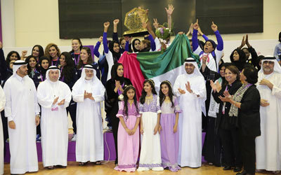خلال تتويج سيدات الشارقة بذهبية كرة الطائرة. من المصدر
