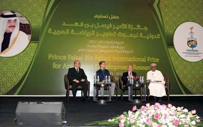 جانب من الندوة العلمية التي عقدت في حفل تكريم الفائزين بجائزة فيصل بن فهد. من المصدر