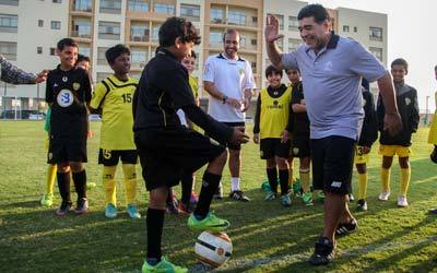 وتفقد مارادونا ملاعب أكاديمية الوصل، وحرص على مشاركة مجموعة من اللاعبين في التدريبات، وتحدث إليهم، مؤكداً أن العمل الجاد والاجتهاد يمكن أن يصنعا لاعباً نجماً.