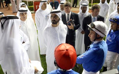 محمد بن راشد خلال السباق. تصوير: أسامة أبوغانم