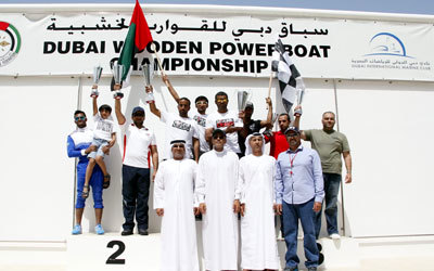 توّج القارب «سكاي دايف دبي 1» بقيادة الشقيقين محمد وأحمد سهيل خلفان المهيري، بطلاً لسباق دبي للقوارب الخشبية السريعة (الجولة الرابعة وقبل الختامية من بطولة الإمارات 2014)، الذي نظمه نادي دبي الدولي للرياضات البحرية، صباح أمس، في شاطئ جميرا بمشاركة 17 محملاً تنافست في المراكز الأولى للسباق.