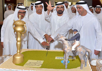 محمد بن راشد يحتفل بلقب كأس دبي العالمي للخيول