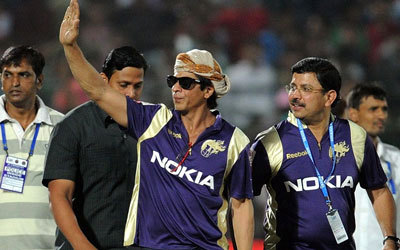 عملاق السينما الهندية شاروخان خلال إحدى مباريات الدوري الهندي للكريكت في 2011. أ٫ب