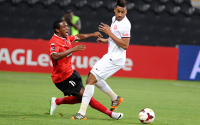 أحمد خليل (يسار) راضٍ عن أدائه في مباراة الجزيرة. تصوير: أسامة أبوغانم