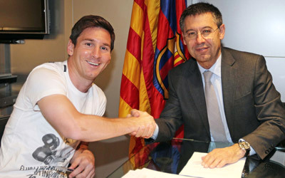 ميسي يوقع عقداً مع برشلونة بـ 20 مليون يورو سنوياً