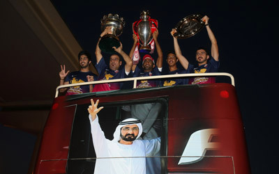وكانت شرطة دبي قد دفعت بأربع سيارات لامبرغيني وفيراري في مقدمة الحافلة، إلى جانب أربع سيارات أخرى خلفها لمنع أي سيارات مصاحبة للمسيرة من تجاوز حافلة اللاعبين.