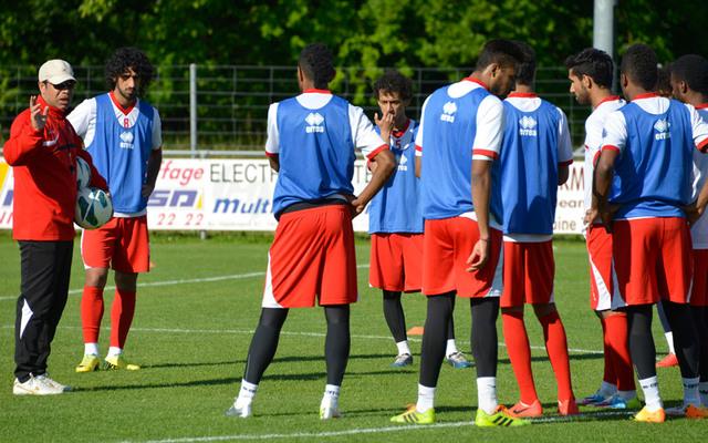 مهدي وبجواره الكمالي أثناء التدريبات. من المصدر