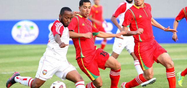 مطر في لقاء أمام منتخب فلسطين بأبوظبي. تصوير: إريك أرازاس