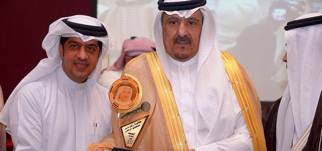 الأمير سلطان بن ناصر بن عبدالعزيز يسلّم جائزة أفضل معلق عربي إلى عدنان حمد. الإمارات اليوم