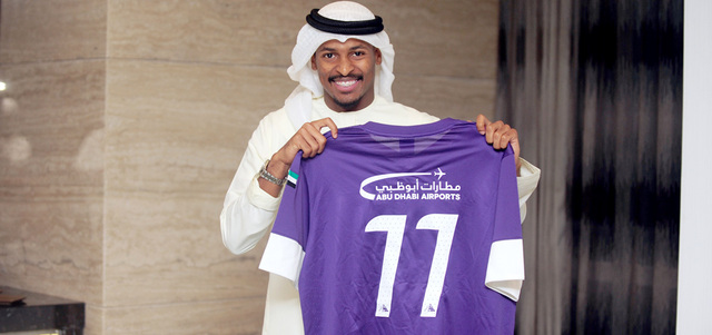 محمد فوزي يعرض قميصه الجديد مع العين. من المصدر