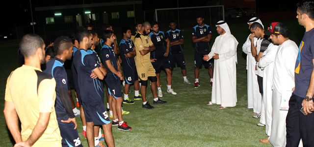 الزعابي يتحدث إلى لاعبي فريق الإمارات قبل انطلاق التدريبات. من المصدر