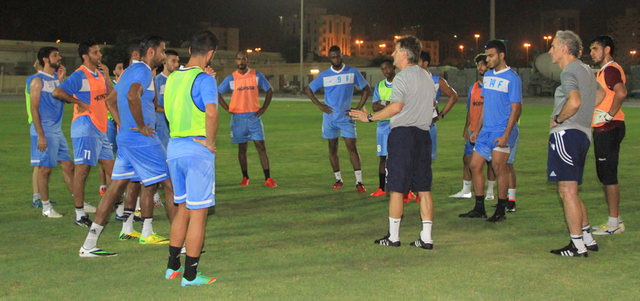 جمال حاجي وجه كلمة إلى اللاعبين في بداية التدريب. من المصدر