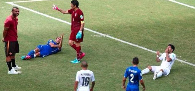 كول يراقب «عضة» سواريز لكيليني في مونديال البرازيل. الإمارات اليوم