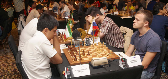 اللاعب رحمانوف تعادل مع المصنف الثاني كرشنكو في مهرجان أبوظبي للشطرنج. من المصدر