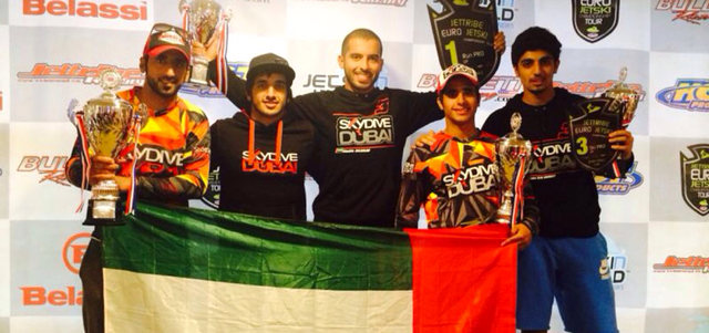 حقق فريق سكاي دايف دبي إنجازاً كبيراً في بطولة أوروبا للدراجات المائية ببريطانيا، بعد أن حصد الثنائي خليفة بالسلاح والمر بن حريز المركزين الأول والثالث على التوالي في بطولة أوروبا 2014 لسباقات الدراجات المائية فئتي (المحترفين مفتوح واقف وجالس) التي اختتمت فعالياتها في مدينة دونكستر في بريطانيا.