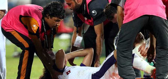 لاعب العين عمر عبدالرحمن تعرّض للإصابة في مباراة فريقه مع عجمان. تصوير: أسامة أبوغانم