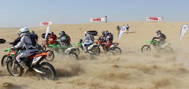 من جهتها، شهدت المنافسة على لقب الدراجات النارية معركة قوية انتهت لمصلحة الإماراتي محمد البلوشي، الفائز بلقب موتو كروس العرب أكثر من مرة والمشارك بدراجة من نوع كيه تي إم، حيث أنهى الجولة بفارق دقيقة و39 ثانية عن محمد جعفر الذي حل ثانياً. وجاء في المركز الثالث الدرّاج روس رونالز، تبعه كل من مارك أكرمان ومارك غرامز وسام سميث على الترتيب.