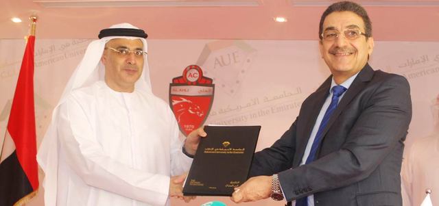 ووقع الاتفاقية المدير التنفيذي للنادي الأهلي، أحمد خليفة حماد، ورئيس الجامعة الأميركية، د.مثنى عبدالرزاق، في المؤتمر الصحافي الذي عقد أول من أمس بمقر النادي الأهلي في دبي.