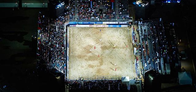 صورة من الأعلى لملعب كرة القدم الشاطئية في دبي. من المصدر