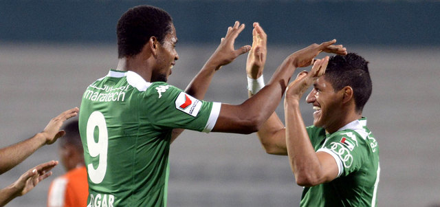 لاعب الشباب أدغر (يسار) سجل هدف فريقه الأول في شباك عجمان. تصوير: أسامة أبوغانم
