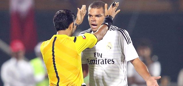 لاعب الريال بيبي اعترض على قرارات حكم المباراة وحصل على البطاقة الصفراء. إي.بي.إيه