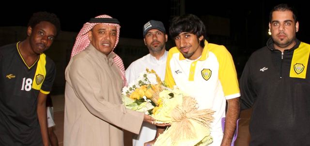 الحارس صالح محمد يتلقى باقة ورد. من المصدر