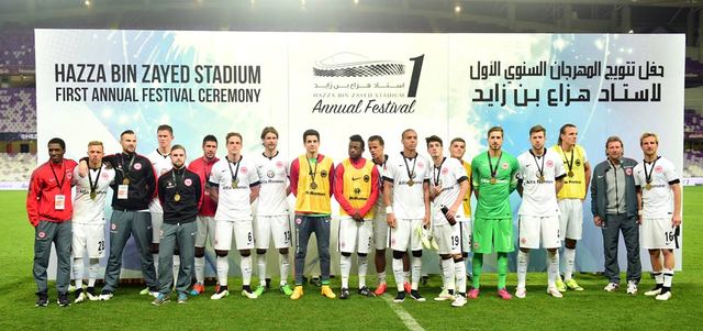 انطلقت مساء أول من أمس الاحتفالية الخاصة بمناسبة مرور عام على افتتاح ملعب هزاع بن زايد، ومن المقرر أن تستمر 10 أيام حتى 24 من الشهر الجاري، وتتضمن فعاليات متنوعة، يأتي في مقدمتها ثلاث مواجهات ودية بمشاركة أربعة أندية هي: مانشستر سيتي الإنجليزي وآينتراخت فرانكفورت وهامبورغ الألمانيان، إلى جانب فريق نادي العين لكرة القدم.
