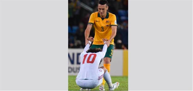 بكى صانع ألعاب منتخب الإمارات عمر عبدالرحمن (عموري) بحرقة، بعد خسارة الأبيض أمام أستراليا، أمس، في نصف نهائي كأس أمم آسيا لكرة القدم، ما أدى إلى تعاطف لاعبي أستراليا ومدربهم، خصوصاً أن (عموري) كان طموحاً لتأهل الأبيض إلى النهائيات، والمنافسة على اللقب القاري في هذا التوقيت مع الجيل الذهبي للإمارات.