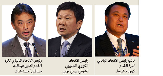 في حين يشغل المرشح الكوري الجنوبي تشونغ مونغ جيو (53 عاماً) رئاسة اتحاد الكرة في بلده، إلى جانب كونه رئيساً لمجلس الإدارة والمدير التنفيذي لشركة هيونداي للتنمية ذات النفوذ الواسع، والحال ذاتها تنطبق على كل من رئيس الاتحاد العماني لكرة القدم خالد البوسعيدي (51 عاماً)، الذي يشغل حالياً منصب عضو اللجنة التنفيذية في الاتحاد الآسيوي، إضافة إلى عضويته في عدد من لجان الاتحادين الآسيوي والدولي لكرة القدم، والقطري سعود المهندي، الذي يتوقع أن ينسحب من سباق المنافسة على عضوية المكتب التنفيذي للاتحاد الآسيوي لمصلحة الشيخ أحمد الفهد، بعدما بات الأوفر حظاً لشغل منصب نائب رئيس الاتحاد الآسيوي لكرة القدم، خلفاً لرئيس اتحاد الكرة، نائب رئيس الاتحاد الآسيوي لكرة القدم، يوسف السركال، لكن الإعلان الرسمي عن تولي هذا المنصب لن يتم إلا في حال انسحابه من سباق «تنفيذية الاتحاد الدولي لكرة القدم»، أو عدم نجاحه في الانتخابات التي ستجرى في أبريل المقبل.