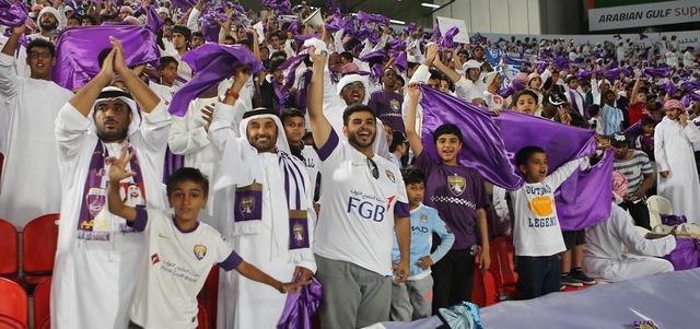 وفي المقابل، غطت شعارات العيناوية المساحات العلوية من الملعب، وكان أبرزها «بطل الملاعب منذ 1968»، و«قاتل من أجل المجد»، و«موطن كرة القدم في الإمارات»، و«عيناوي أسطورة». وعند إطلاق صافرة البداية للقاء، تكرر المشهد المعتاد من الجماهير، بإخراج الهواتف المحمولة وإضاءتها للاحتفال مبكراً.