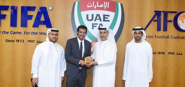 وقام فيغو بزيارة إلى مقر اتحاد كرة القدم بالإمارات، حيث التقى رئيس الاتحاد، يوسف السركال، وقال إن زيارته هي بحث عن الأفكار الجديدة التي يمكن أن يستفيد بها من الإمارات، وكذلك للحصول على الدعم في الانتخابات المقبلة.