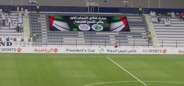 قدمت أسرة النصر التهنئة لنادي الشباب بمناسبة تتويجه أخيراً بطلاً للأندية الخليجية، عقب فوزه في النهائي على السيب العماني بركلات الترجيح. ورفع العميد لافتة على مدرجات ملعبه كتب عليها: «نبارك لنادي الشباب الفوز بكأس الأندية الخليجية»، ووضع شعار ناديي الشباب والنصر على اللافتة، وذلك خلال مواجهة الفريقين في الدور نصف النهائي لمسابقة كأس رئيس الدولة.