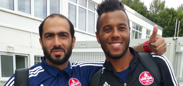 ميشيل لارانت مع مدير فريق الشعب فيصل اليافعي. من المصدر