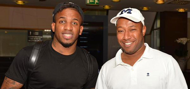 فارفان (يسار) وأحمد سعيد لدى وصول اللاعب إلى معسكر النمسا. من المصدر