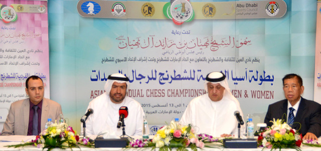 جاء ذلك الإعلان خلال المؤتمر الصحافي، أول من أمس، بمدينة العين التي تحتضن مقر الاتحاد القاري للعبة بحضور نائب رئيس اتحاد الإمارات للشطرنج عبدالعزيز عبدالله حسين خوري، والأمين العام للاتحاد الآسيوي للشطرنج مدير البطولة هشام الطاهر، والمدير التنفيذي للاتحاد الآسيوي كاستو أبوندو، وممثل عن فندق هيلتون العين سامح عبدالوهاب.