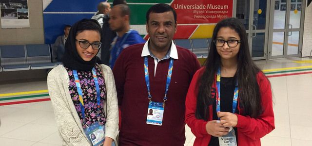 الزحمي يتوسط علياء الشامسي وندى البدواوي في كازان. من المصدر