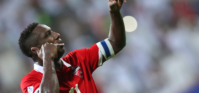خليل بعد تسجيل هدف الفوز. تصوير: أسامة أبوغانم