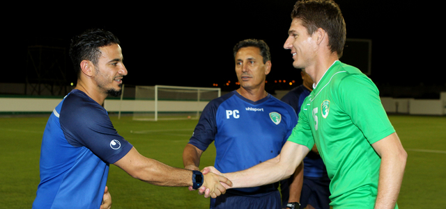 ونشر الموقع الرسمي للإمارات، أول صورة للاعب بزي الصقور وهو أيضاً يصافح المدرب البرازيلي باولو كاميلي.