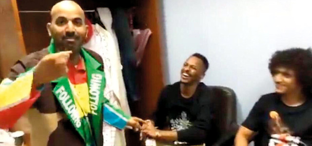 تناقل مغرّدون على موقع التواصل الاجتماعي «تويتر»، بعد مباراة المنتخب الوطني ونظيره السعودي، مقطع فيديو يضم لاعبي المنتخب الوطني «عموري» ومحمد فوزي، بصحبة الممثل الكوميدي الكويتي طارق العلي، إذ ظهر فوزي ممسكاً بطبل، و«عموري» يصفق، والعلي يغني. ولم يتسن لـ«الإمارات اليوم» معرفة توقيت هذا الحدث.