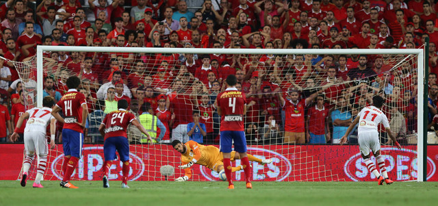 نجم الزمالك محمود كهربا نفّذ ضربة الجزاء الضائعة أمام الحارس المتألق شريف إكرامي. تصوير: أسامة أبوغانم