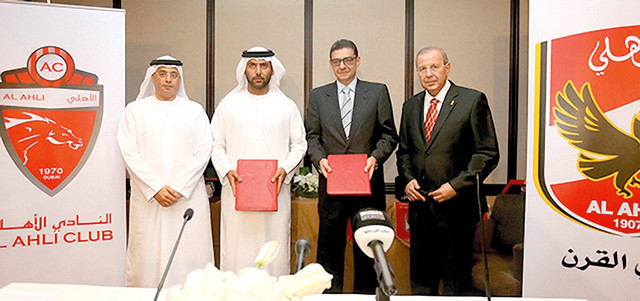 وقع النادي الأهلي، أمس، اتفاقية تعاون مع شقيقه الأهلي المصري، تقضي بتعزيز أطر التعاون والعمل المشترك، لما فيه تطوير الألعاب الجماعية والرياضات الفردية في الناديين، من خلال سلسلة من المشروعات والمبادرات المشتركة، لتأهيل وإعداد اللاعبين والكوادر الإدارية والفنية على أسس علمية متطورة، تهدف للوصول إلى منصات التتويج العالمية.