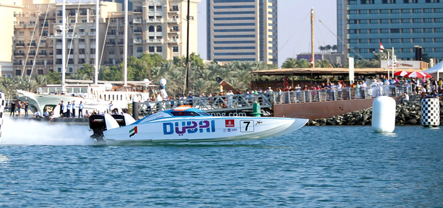 «دبي 7» مع زورق «دبي 3» يمثلان «الفيكتوري تيم» في الجائزة العالمية قبل الأخيرة. من المصدر