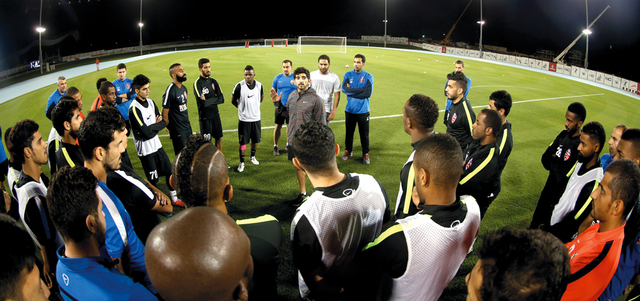 حمدان بن محمد خلال لقائه مع لاعبي الأهلي. من المصدر