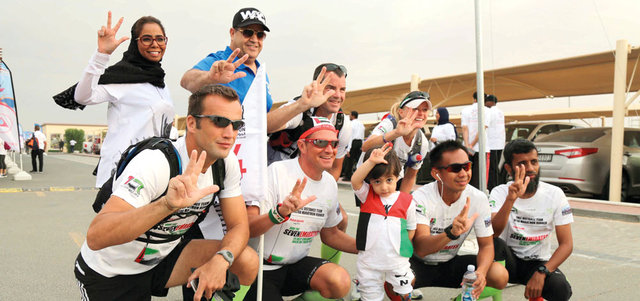 وشهد السباق مدير العلاقات العامة بسكاي دايف دبي، سالم أكرم، ومدير أول تسويق بمؤسسة الجليلة المشرفة على السباق، خلود أحمد بوعيشة، وعدد من أسرة سكاي دايف دبي. ويطوف السباق الخيري الإمارات السبع، ويغطي مسافة 575 كم على مدى 12 يوماً، حيث سيصل العدّاؤون إلى خط النهاية بدبي في اليوم الوطني الـ44 الموافق 2 ديسمبر المقبل. ويهدف الحدث إلى جمع 777 ألف درهم لدعم الأطفال الذين يعانون إعاقات تحول دون قدرتهم على المشي والحركة، وذلك من خلال صندوق «عاون» الخيري التابع لمؤسسة الجليلة، والذي يعنى بتقديم المساعدات المادية للمرضى غير القادرين على تحمّل نفقات العلاج. وقد أعرب رئيس اتحاد الامارات للرياضات الجوية رئيس سكاي دايف دبي، نصر حموده النيادي، عن سعادته وأسرة سكاي دايف دبي بالتعاون مع مؤسسة الجليلة، واحتضان سباق الجري ضمن فعاليات اليوم الرياضي الوطني.