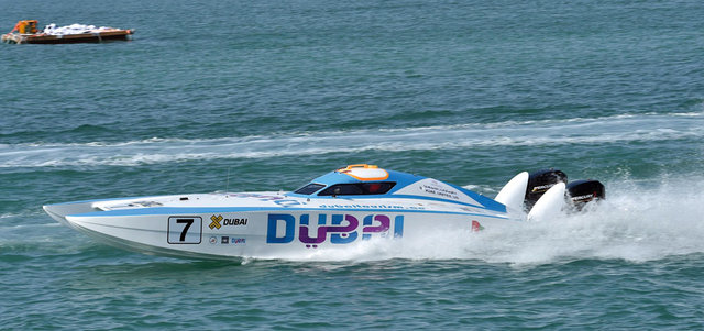 زورق «دبي 7» أول المنطلقين في السباق الرئيس اليوم. من المصدر