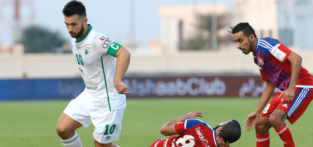 مهاجم الشباب فيلانويفا يمر من لاعبي الشعب. تصوير: مصطفى قاسمي