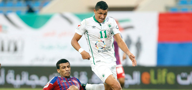 لوفانور تسبب في ركلة جزاء وسجل هدفاً من ثلاثية الجوارح في مرمى الشعب. تصوير: مصطفى قاسمي